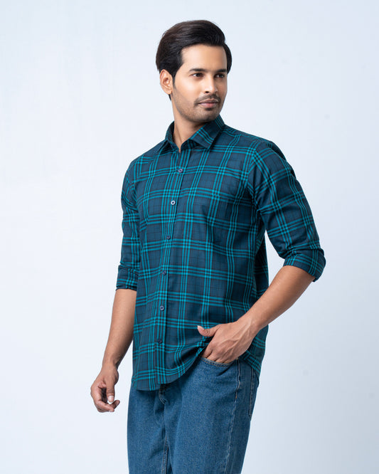 Men's Premium Casual Shirt - Teal Check